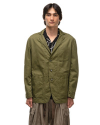 Unique cycling inspired jacket in a breathable cotton and linen chino cloth. Features a spread lapel with three-button closure. Three large patch pockets at the chest. Unique vented rear panel with concealed pockets. The jacket includes two custom silk scarves with a magnetic tab that allows it to be fastened to buttons at the rear vent. Made in Japan. DETAILS - K2103LJ043 - 75% cotton, 25% linen - 3 button closure - Spread collar - Patch front pockets - Includes two silk scarves with magnetic tab that can be attached to the rear vent - Concealed back pockets - Made in Japan