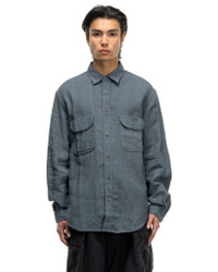 A classic button up shirt crafted in a loose, relaxed fit from a comfortable, airy linen cloth. An easy summer shirt with soft drape and nuanced details, typical of KAPITAL, like the curved pocket flaps, placket embroidery and loops for clip attachment found at pocket and placket. Made in Japan. DETAILS - K2303LS055 - 100% linen - Relaxed fit - Two patch chest pockets with cuvred flap closure - Button closure - Loops for clip attachment - Subtle placket embroidery - Made in Japan