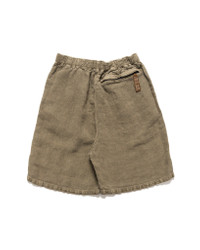 These relaxed fitting shorts are cut from a heavy but airy hemp linen canvas. A durable but breathable fabric that has been heavily washed for a vintage look and comfort. Finished with an elasticated waist with integrated branded belt for ease of wear. Made in Japan.