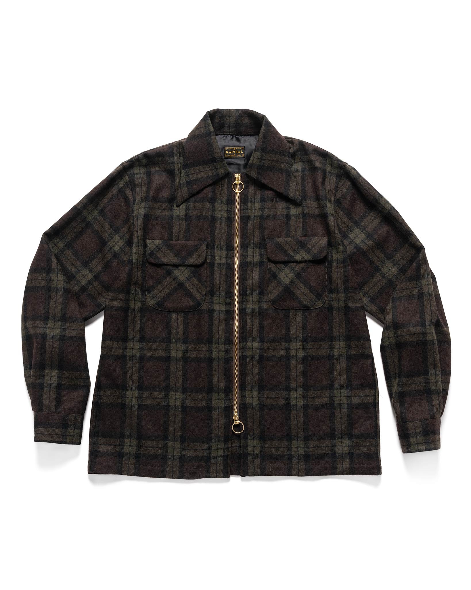 The KAPITAL Wool Check DRIZZLE Open Collar Shirt combines classic plaid design with modern functionality. Crafted from a wool blend for warmth and texture, this open-collar shirt features a relaxed silhouette with a double zip front closure and ring zipper pulls. Perfect for layering, this piece exudes timeless style with a contemporary edge. DETAILS - K2410LS062 - Body: 60% Wool, 25% Polyester, 5% Acrylic, 5% Nylon, 5% Rayon - Lining: 100% Polyester - Checked wool blend fabric - Relaxed fit - Long spread collar - Double zip front closure with ring zipper pulls - Flapped chest patch pocketsc - Button cuffs - Made in Japan