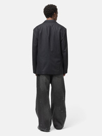 The Lemaire Soft SB Jacket reinterprets classic tailoring with a lightweight cashmere-blend, offering a soft, fluid drape and understated elegance. Its oversized cut allows freedom of movement while maintaining a refined silhouette, complemented by a single-breasted closure, tailored collar, and welted pockets inside and out. Fully lined, this jacket balances comfort and sophistication for versatile, modern wear. DETAILS - JA1080 LF1158 - 50% Cashmere, 47% Polyamide, 3% Wool - Lining: 51% Cotton, 49% Viscose - Oversized fit - Fully lined model - Oversized cut - Single-breasted closure - Tailored collar - Welt chest pocket - Welted side pockets - Welted inside pockets, including one buttoned - Made in Romania