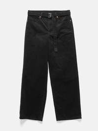 sacai take inspiration from both classic jeans and traditional tailoring for these straight-fit corduroy trousers. Crafted in Japan from fine-wale cotton-blend corduroy, they feature classic 5-pocket styling and a self-fabric adjustable belt with a silver-tone, logo-engraved buckle. The relaxed fit and versatile material make them ideal for transitional weather. A refined yet effortless piece, they balance comfort, style, and modern design. DETAILS - 25-03820M - Body: 80% Cotton, 20% Polyester - Lining 100% Cupro - Relaxed, straight fit - Built in belt with custom buckle - 5 pocket styling - Made in Japan