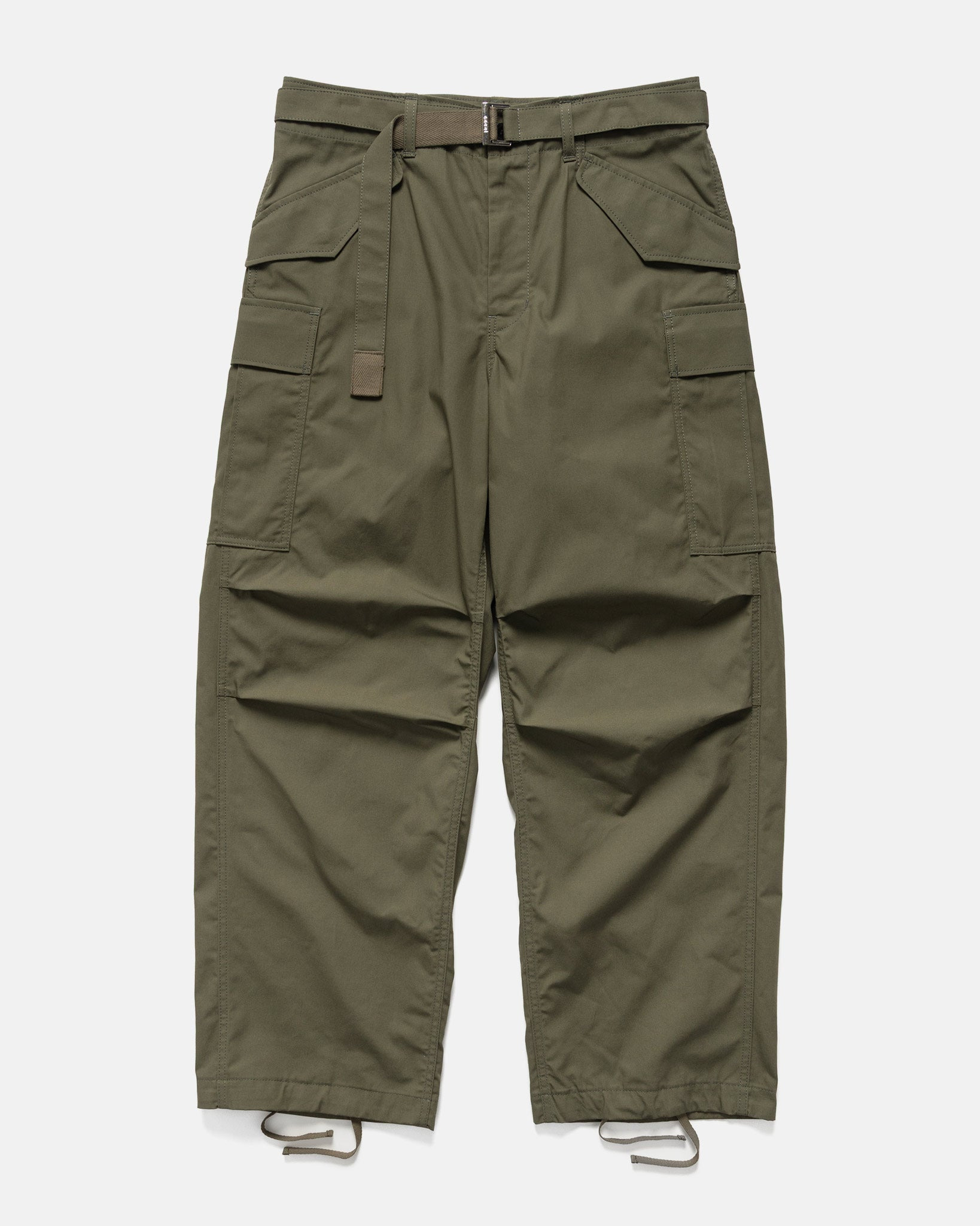 A refined take on the classic military BDU, sacai’s Cotton Nylon Oxford Pants balance rugged utility with a sophisticated edge. Made from durable yet soft cotton nylon oxford cloth, they’re cut with a relaxed fit, articulated knees for mobility, and abundant pocket storage for daily essentials. An integrated belt and adjustable drawcord hems allow for a personalized fit and styling versatility. Equally functional and polished, they’re ideal for both everyday wear and more considered outfits. DETAILS - SCM-247 - 70% Cotton, 30% Nylon - Relaxed, tapered fit - Integrated waist belt - Zip fly with button closure - Six-pocket construction - Flapped hand and back pockets - Cargo pockets with straps - Articulated knees - Made in Japan