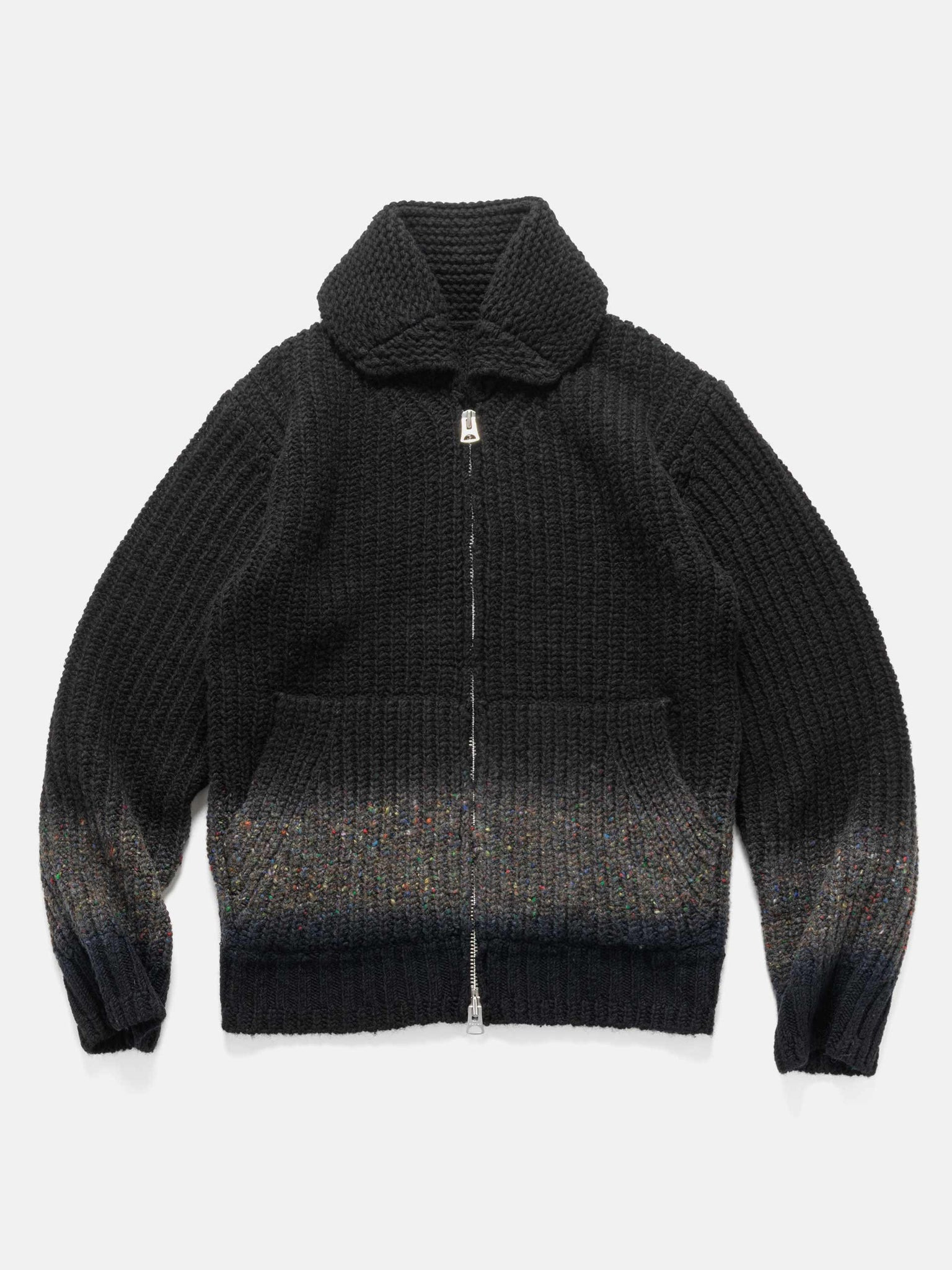 sacai elevate the traditional shawl collar cardigan through its garment-dyed degrade stripe pattern, a modern fit and silver-tone hardware. Crafted from substantial wool with wide rib knitting, it delivers cozy warmth while maintaining structure. The two-way zip allows adjustable coverage, making it versatile for layering and seasonal transitions. A bold, functional piece, it balances contemporary design with everyday comfort. DETAILS - 25-03831M - 100% Wool - Garment dyed - Relaxed fit - Shawl collar - Two-way zip closure - Kangaroo hand pockets - Zip closure - Logo-engraved silver-tone hardware - Made in China