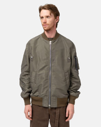 The sacai Nylon Twill Blouson reimagines the classic MA-1 jacket with a refined, modern aesthetic. Crafted from luxurious nylon twill, it features a relaxed fit and elevated performance materials for both style and functionality. Signature sacai details include snap closure split side seams, a two-way zip closure, and ribbed trims, blending tradition with contemporary design. This versatile piece showcases sacai's innovative approach to technical fashion. DETAILS - SCM-201 - Body: 100% nylon - Trims: 55% polyester, 44% cotton, 1% polyurethane - Filling: 100% polyester - Lining: 100% polyester - Relaxed fit - Two-way zip closure - Internal storm flap - Snap closure split side seams - Zipper sleeve pocket - Zipper welted hand pockets - Ribbed hem, collar and cuffs - MA-1 inspired detailing - Made in Japan