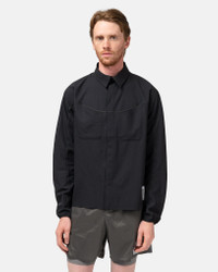 Built for long days on the trail, the SATISFY PeaceShell™ River Shirt delivers breathable protection and thoughtful performance features. Made from ultralight, fast-drying PeaceShell™ recycled micro twill from Japan, it features dual ice pockets at the upper back for rapid mid-run cooling. Flatlock seams and a frictionless finish ensure all-day comfort, while chest pockets offer easy access to essentials. With invisible snap buttons, cinched cuffs, and a removable care label, it’s streamlined for speed and freedom of movement. DETAILS - 11017-BK - 100% Recycled polyester - Fast dry lightweight PeaceShell™ - Regular, cropped fit - 2 front chest pockets - 2 ice pockets on the upper back - Invisible snap button closure - Cinched cuffs - Anti-chafe flat seam construction - Exterior detachable care label - Low-key ©SATISFY reflective print - 168g weight - Made in Portugal