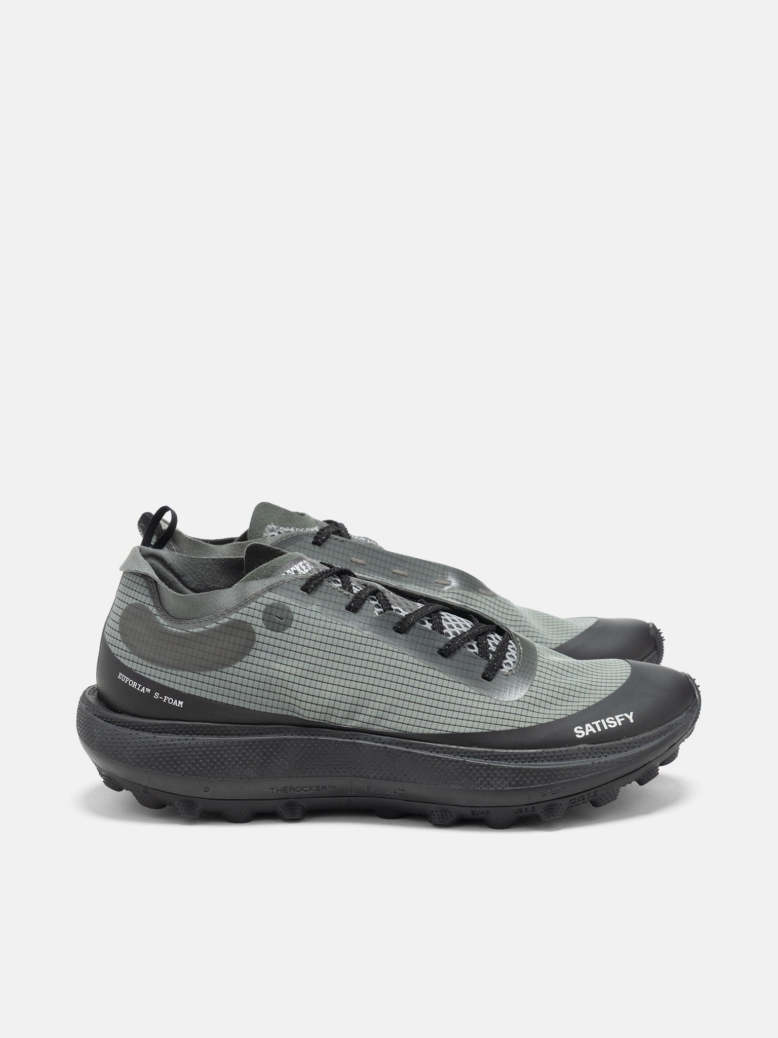 Built for road-to-trail transitions and long-distance efforts, TheROCKER blends advanced traction, cushioning, and durability in one versatile shoe. The Vibram® TuneLug™ outsole delivers secure grip across wet and dry terrain, while SATISFY’s Euforia™ midsole provides stable cushioning that stays consistent over miles. Finished with the lightweight, breathable Rippy™ 66 Monomesh upper, it locks in comfort and resilience for mid- to ultra-distance runs. DETAILS - #40002-AW-SE - Rippy™ 66 high-tenacity monomesh upper - Euforia™ super foam midsole with a proprietary PEBA/EVA blend - TuneLug™ engineered outsole with Vibram® Megagrip™, Litebase™, and Traction Lug™ - Asymmetrical lacing system - Dual-width form: D-width heel, E-width forefoot - Serrated laces - Shoe covers and sticker sheets included