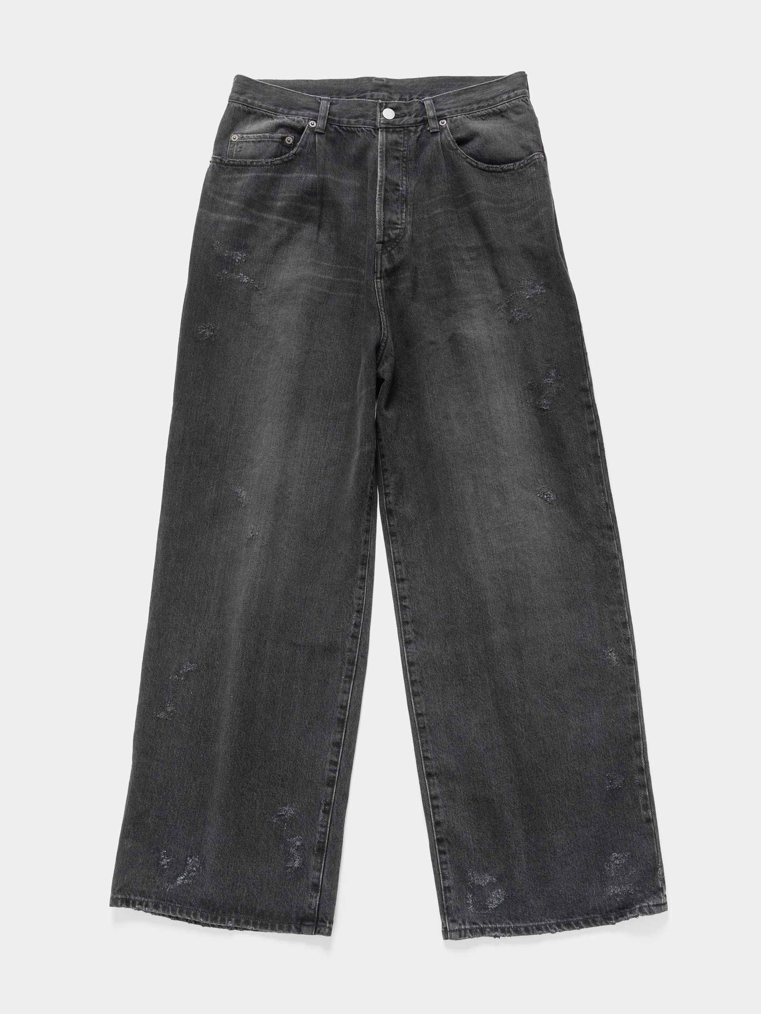 These jeans take a familiar five-pocket style and rework it through ssstein’s distinctive lens. Their wide leg, deep rise and pleated waist offer relaxed comfort and a bold, voluminous silhouette, while the layered washing and distressing techniques create a rich, lived-in texture unique to each pair. Finished with hand-applied wear details and an adjustable drawcord waist, they bring vintage character and easy versatility to everyday wear. DETAILS - ST.1237 - 100% Cotton - Vintage-washed Japanese denim - Wide, straight fit - Washed and distressed treatment - Pleated waist - Five-pocket design - Button fly closure - Internal drawstring waist - Made in Japan