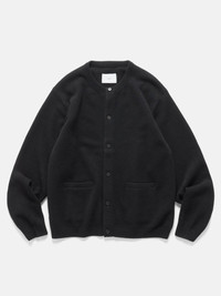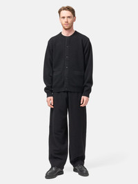 Extra Fine Wool Knit Crew Neck Cardigan Black