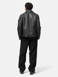 A refined take on a classic coach silhouette, the Stone Island Matt Grain Leather Coach Jacket blends utilitarian design with elevated craftsmanship. Cut from soft, naturally finished bovine leather, it offers a matte texture and pronounced grain that will age beautifully over time. The quilted inner layer is insulated with PrimaLoft® Gold P.U.R.E™ for lightweight warmth and comfort in cooler conditions. Functional details — including a convertible collar, secure pockets — complete a versatile, understated piece built for daily wear. DETAILS - 0100002 S0280 - Body: 100% Cowhide - Lining: 100% Nylon - Padding: 100% Polyester - PrimaLoft® Gold P.U.R.E™ insulation - Regular, slightly cropped fit - Convertible collar - One patch pocket on left chest with diagonal zipper - Standing hand pockets with hidden snap - One inner pocket with button and Compass logo embroidery - Two-way zipper fastening - Snap adjustable cuffs - Leather strap with tightening snaps at bottom hem - Stone Island badge on left sleeve - Made in Romania