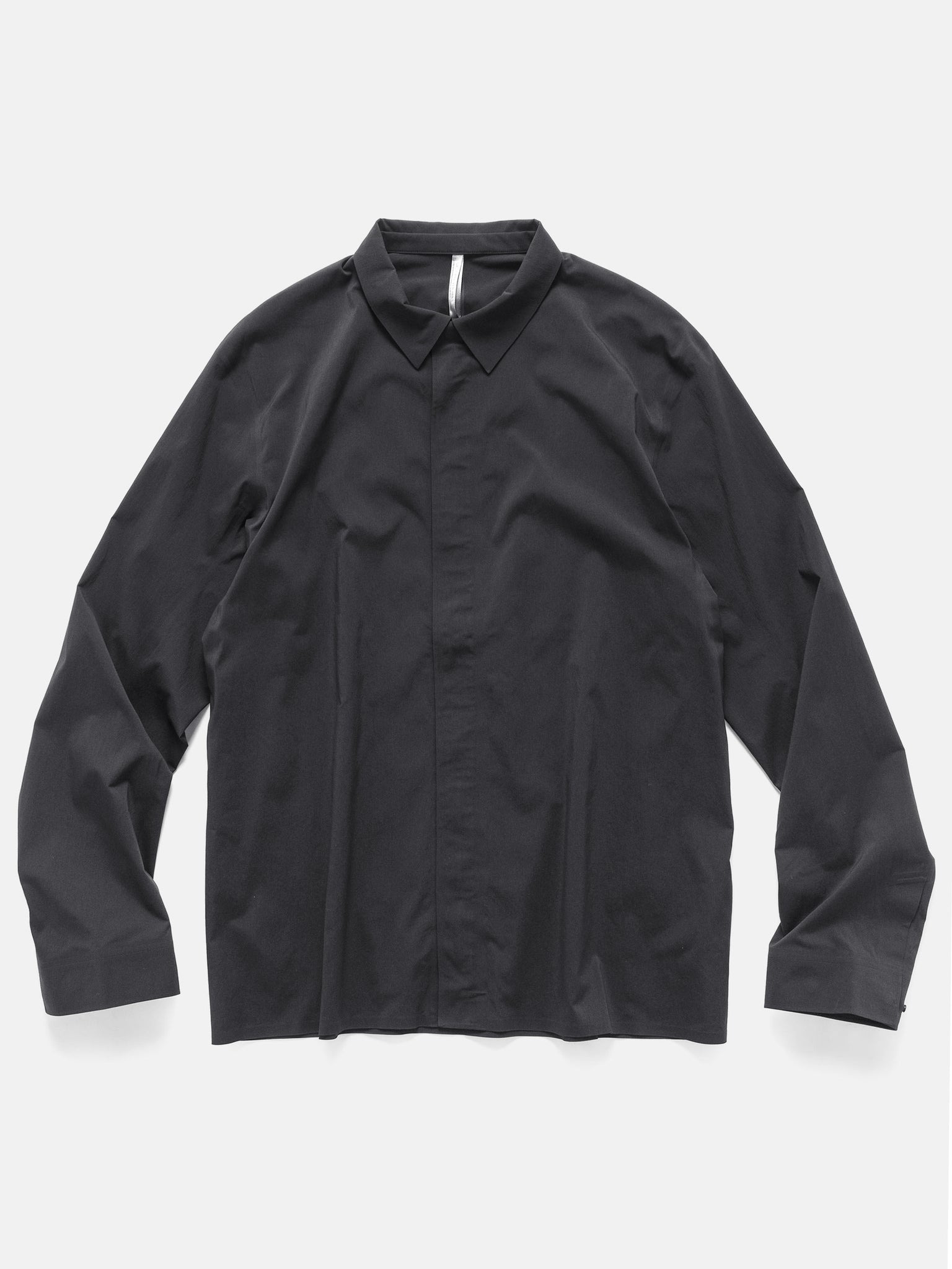 The Veilance Metry LS Shirt is a modern wardrobe staple, offering elevated style and versatile function. Constructed from breathable stretch nylon, it combines comfort with a refined, streamlined regular fit. The ultrasonic welding creates a clean, minimalist finish, while the hidden front snaps maintain a sleek look. Articulated patterning ensures ease of movement, making it a perfect addition to both formal and casual wardrobes. DETAILS - X000009122 - 93% Nylon, 7% Elastane - Teslin™ fabric - Moisture-resistant, breathable, lightweight, durable - Ultrasonic welded seam finishing - FC0 DWR (Durable Water Repellent) finish - Regular fit - Micro-seam collar and cuffs - Shirt cuff with invisible snaps and sleeve vent - Centre front zipper - Cobrax™ snap closure - Articulated patterning for unrestricted mobility