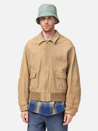 The visvim Mahon JKT Suede elevates the classic Harrington jacket through exceptional craftsmanship and the use of luxurious materials. Crafted from buttery-soft French vegetable-tanned lamb suede, it offers a rich texture and natural warmth that only improves with age. visvim’s signature damage treatment enhances the leather’s velvety touch and reveals its organic character, giving each piece a lived-in individuality. Finished with visvim's standard custom details like ribbed hem, zip fastener, and water-buffalo buttons, it embodies refined craftsmanship and attention to detail. DETAILS - 0125205014002 - Body: 100% Suede - French Vegetable Tanned Lamb Leather Jacket - Nylon lining - Damaged finish - Relaxed fit - Natural dye - Custom water buffalo buttons - Custom zip fastener - Custom hem ribbing - Button cuffs - Button flap closure hand pockets - Made in Italy