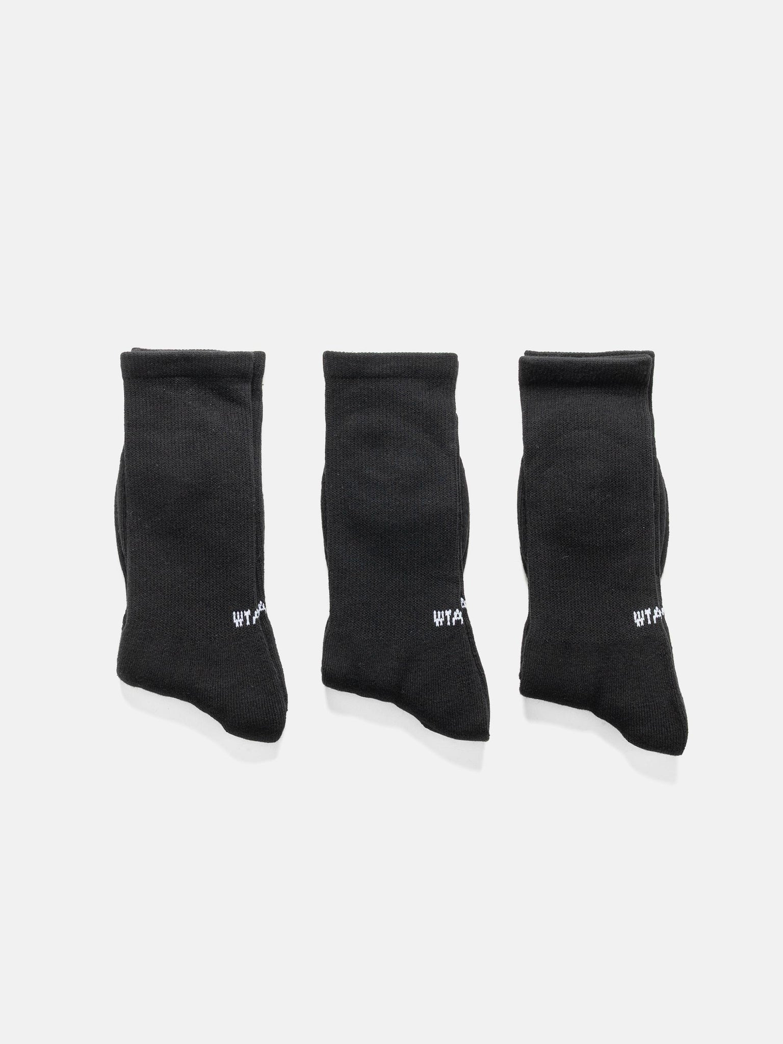 The WTAPS Skivvies Sox are everyday essentials designed for comfort and durability. Cut in a classic crew length, they’re knit from a soft cotton blend with just enough stretch for a snug, supportive fit. Offered as a three-pack and finished with jacquard WTAPS branding at the heel. DETAILS - 252MYDT-UWM05 - 70% Cotton, 30% Acrylic - Midweight knit - Pack of 3 - Classic crew length - Ribbed cuff - Jacquard logo at heel - Made in China