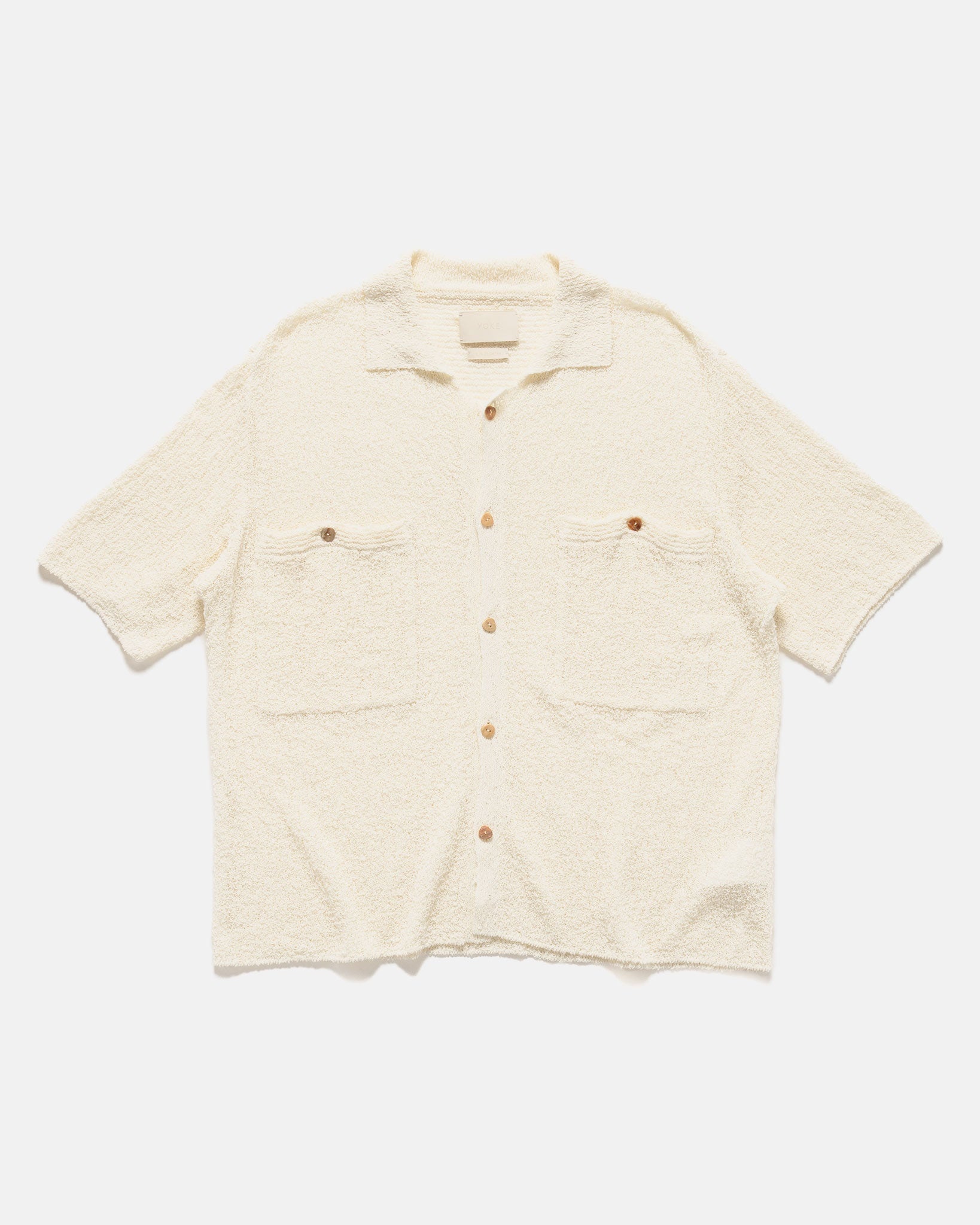 YOKE Cotton Sheer Knit Open Collar Shirt Off-White DETAILS - YK25SS0964S