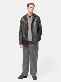 This car coat is crafted from thick, full-grain cow leather that softens and molds to your shape, giving it a long life and a naturally broken-in feel. The cut-off stitching brings a raw yet refined character, while the five-button front lets you wear it open like a blouson or closed for a sharper, structured look. A full lining adds comfort and easy layering, and the clean seam pockets keep the silhouette sophisticated. It’s a durable, expressive outer layer built to elevate everyday dressing. DETAILS - YK25FW01018B - Shell: Cow Leather - Lining: 54% Rayon 46% Cotton - Relaxed fit - Panelled construction - Full lining - Spread collar - Inseam hand pockets - Button front closure - Cut-off finish hem and cuffs - Made in China