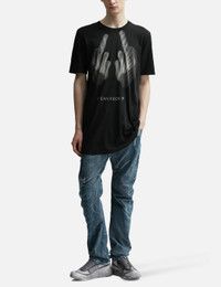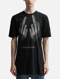 - 11 By Boris Bidjan Saberi - TS5 F1101 Middlefinger T-shirt - Regular fit - Made from a light-weight cotton jersey - Ribbed crewneck - Short sleeves - Graphic print on the front - Brand logo print on the back yoke - Made in Portugal - Due to the special treatments, irregularities or imperfections may be visible in the garment. - Color: Black - Material: 100% Cotton - See more T-Shirts and Clothing SIZING - Model wears size M - Model measures: Height 187cm, Chest 36”/91cm, Waist 29”/74cm, Hip 37”/94cm