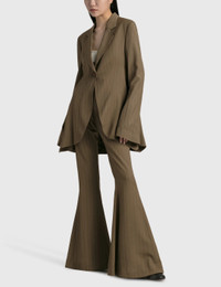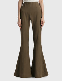- Acne Studios - Flared Striped Trousers - All-over pinstripes - Fitted silhouette with a flared hem - Concealed zip closure - Long length - Color: Khaki Green - Material: Viscose, Wool, Polyester - See more Pants and Clothing SIZING - Model wears size 36 - Model measures: Height 170cm, Chest 29”/75cm, Waist 22”/57cm, Hip 33”/86cm