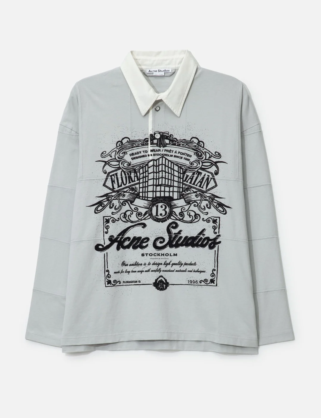 - Acne Studios - Logo T-shirt - Made of organic cotton - Relaxed fit - Standard collar with three-button closure - Long sleeves - Acne Studios' Floragatan artwork printed on the front - Topstitched panel design on front and sleeves - Side slit details at hem - Color: Cold Grey - Material: 100% Cotton - See more LS T-Shirts, T-Shirts and Clothing - Model wears size M - Model measures: Height 186cm, Chest 34”/86cm, Waist 28”/71cm, Hip 36”/91cm - Model wears size S - Model measures: Height 177cm, Chest 32”/81cm, Waist 23.5”/59.7cm, Hip 33’’/83.8cm - Vendor Code: FN-UX-TSHI000142