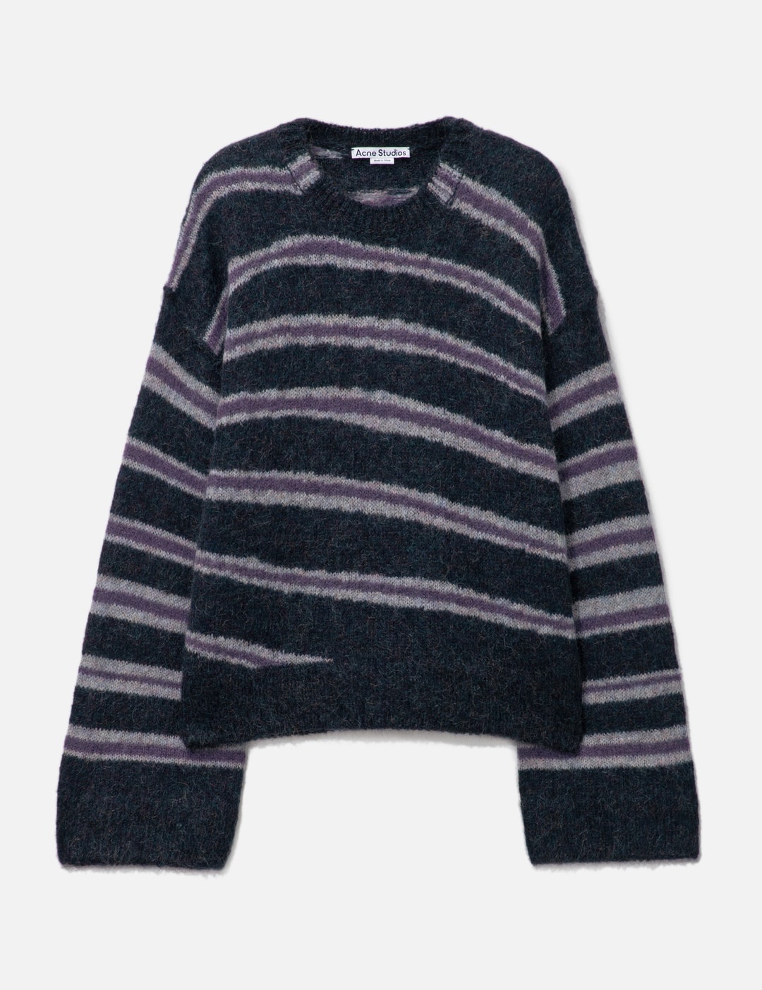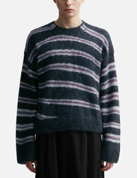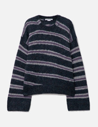- Acne Studios - Mohair Blend Jumper - Nylon-mohair blend brushed fabric - Spiral stripe details - Ribbed collar, cuffs, and hem - Hip-length - Color: Dark Gray Melange/Multicolor - Material: 44% Nylon, 32% Wool, 24% Mohair - See more Knitwear and Clothing SIZING - Model wears size M - Model measures: Height 188cm, Chest 36"/92cm, Waist 30"/76cm, Hip 37"/94cm