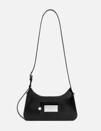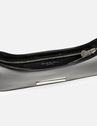 - Acne Studios - Platt Micro Shoulder Bag - Made of abrasivato leather - Acne Studios logo metal plaque on front - Zipper closure - Curved top - Decorative removable mirror on back - Folded base and sides - Lined - Protective dustbag included - Made in Italy - Color: Black - Material: 100% Calf leather; Lining: 50% Polyurethane, 50% Polyester - See more Bags and Accessories SIZING Approximate dimensions: - Height: 9cm - Width: 21cm - Depth: 2cm - Strap Length: 22cm