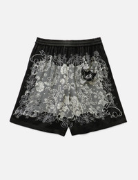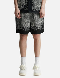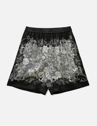 - Acne Studios - Print Shorts - Lace-effect print - Elasticated waistband - Two side pockets; one rear pocket - Color: Black/Ecru - Material: 100% Viscose - See more Shorts and Clothing SIZING - Model wears size 48 - Model measures: Height 187cm, Chest 36”/91cm, Waist 28”/72cm, Hip 36”/91cm