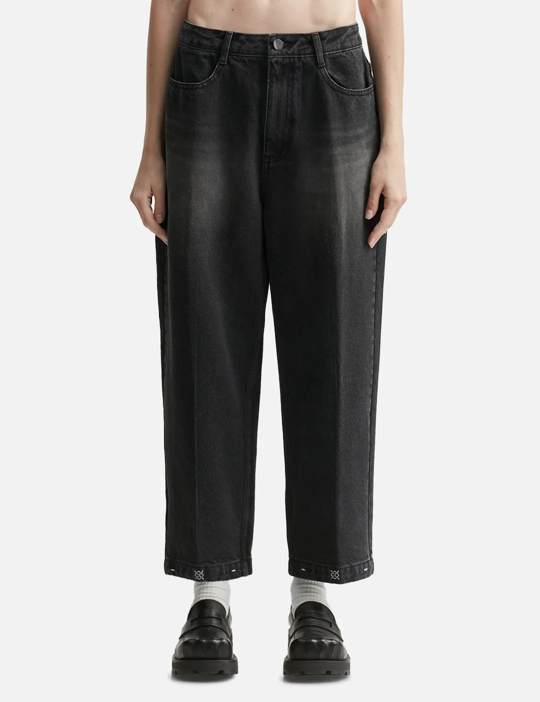 - Ader Error - Jeans 0112 - Zip fly with custom button closure - Washed effect - Tonal stitching on center front and back - 4-pocket - Stitching details at back pockets and hem - Color: Grey - Material: 100% Cotton - See more Jeans and Clothing - Model wears size L - Model measures: Height 186cm, Chest 34”/86cm, Waist 28”/71cm, Hip 36”/91cm - Model wears size M - Model measures: Height 177cm, Chest 32”/81cm, Waist 23.5”/59.7cm, Hip 33’’/83.8cm - Vendor Code: BO01FWJE0112GR