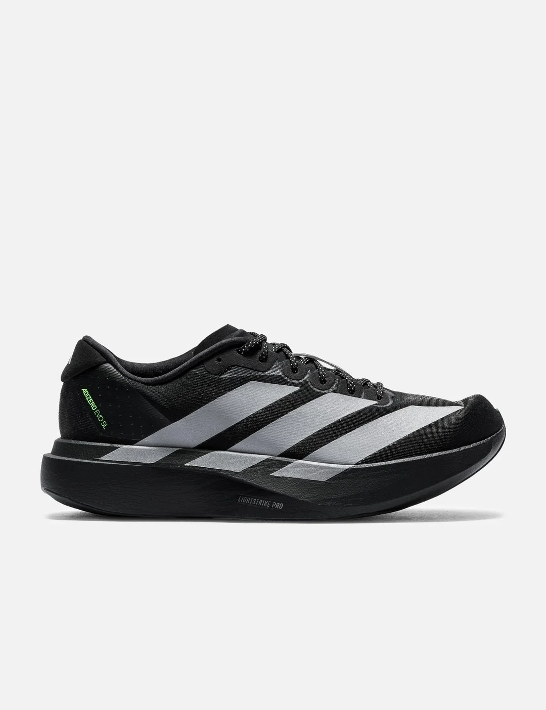 - adidas Originals - Adizero EVO SL Shoes - Synthetic and textile upper - Lightweight and breathable - Lace closure - Adizero label on lace - Textile lining - LIGHTSTRIKE PRO foam midsole - Continental rubber and CL rubber outsole - Color: Core Black/ Silver Metallic / Signal Green - Material: Textile, Synthetic, Rubber - See more Sneakers and Shoes - Vendor Code: KJ1365