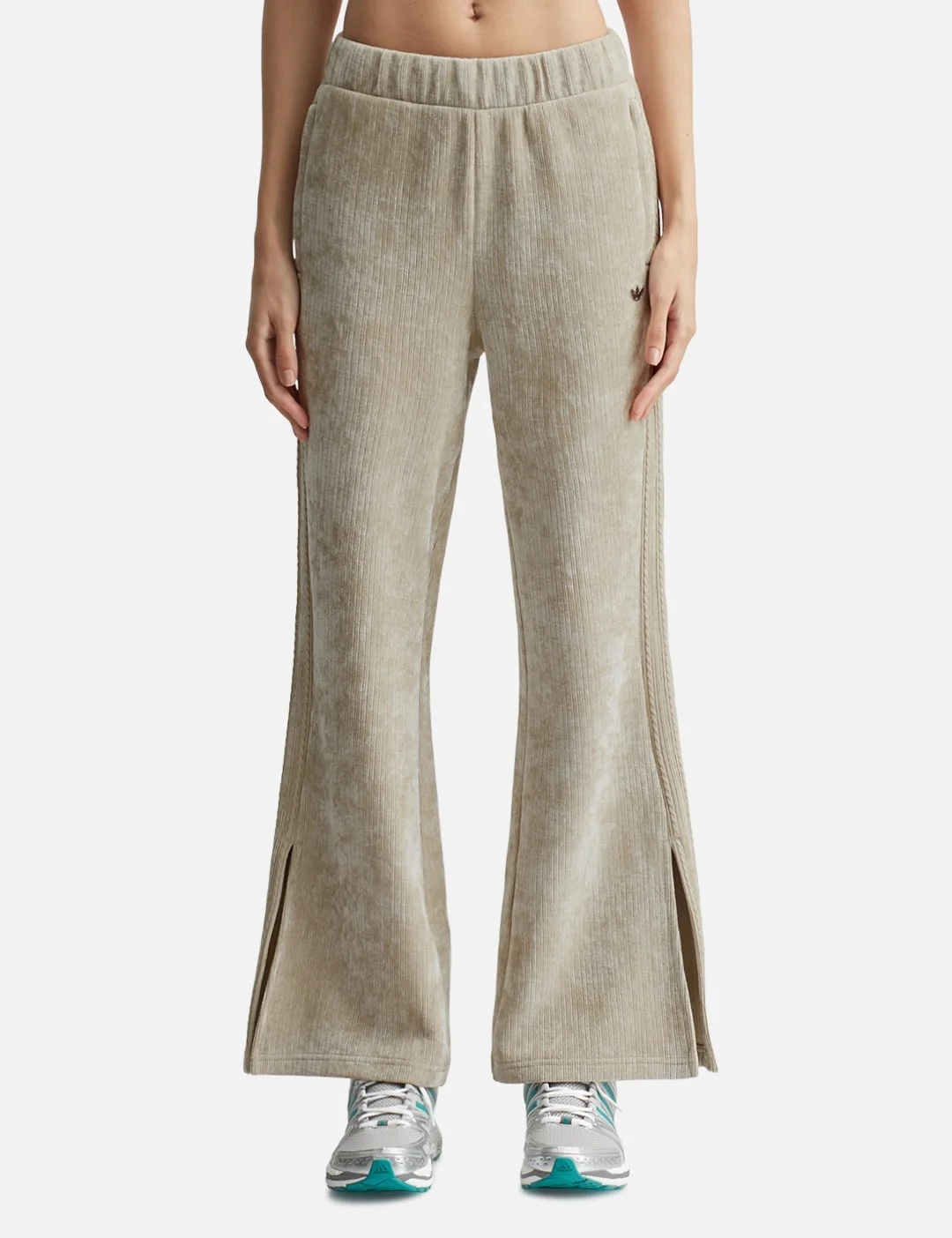 - adidas Originals - Chenille Pants - Double-knit construction - Regular fit - Elasticated waistband with hidden drawcord - Side zip pockets - Embroidered logo on the left leg - Signature 3-stripe detail along the leg line - Side slits at hem - Color: Wonder Beige - Material: 50% Cotton, 50% Polyester - See more Pants and Clothing - Vendor Code: KS5984