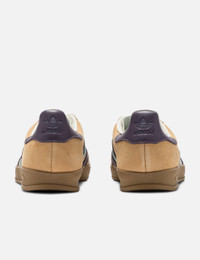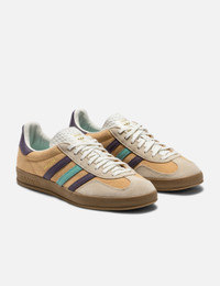 - Adidas Originals - Gazelle Indoor Shoes - Leather upper with T-shaped suede overlays - Regular fit - Lace-up closure - Signature 3-stripe appliqué to the sidewalls - Gold-tone logo detailing - Leather lining - Translucent rubber outsole - Color: Glow Orange/Shadow Violet/Off White - Style Code: IG1636 - Material: Leather, Suede, Rubber - See more Sneakers and Shoes