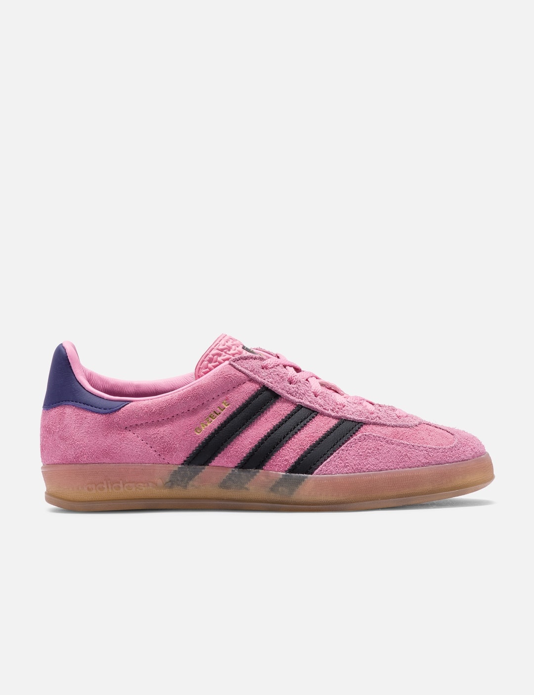 - Adidas Originals - Gazelle Indoor W - Regular fit - Lace up closure - Suede upper - Gum rubber outsole - Contrast heel tab - Leather lining - Color: Bliss Pink/Core Black/Collegiate Purple - Material: Leather, Suede, Rubber - See more Sneakers and Shoes