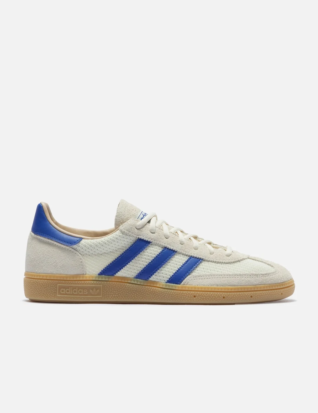 - adidas Originals - Handball Spezial - Leather and synthetic upper - Lace-up closure - Textile lining - Semi-translucent gum rubber outsole - Color: Cream White / Blue / Warm Sandstone - Material: Leather, Syntheti, Textile, Rubber - See more Sneakers and Shoes - Vendor Code: JS3865