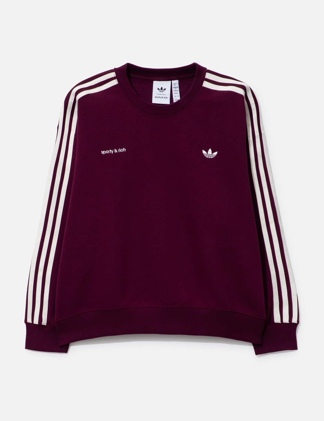 - Adidas Originals - Sporty & Rich Sweatshirt - adidas x Sporty & Rich collaborative collection - Soft cotton-blend fabric - Embroidered co-branding at front - Ribbed cuffs and hem - Brushed lining - Color: Maroon - Material: 52% Cotton, 48% Recycled Polyester - See more Sweatshirts and Clothing SIZING Male - Model wears size L - Model measures: Height 186cm, Chest 34”/86cm, Waist 28”/71cm, Hip 36”/91cm