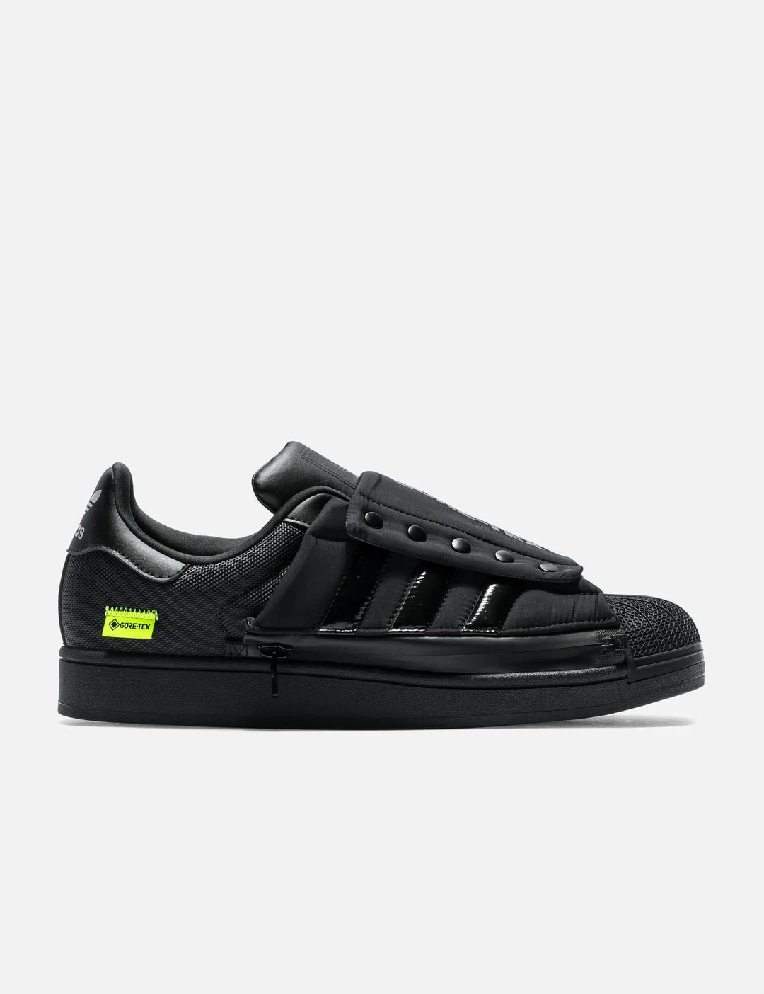 - adidas Originals - Superstar II GTX - Gore-Tex synthetic upper - Lace-up closure - Shell toe - Reflective lace and Gore-Tex logo - Lace cover with waterproof zipper and snap button closure - 3-stripes at sides - Gore-Tex woven label at heel counter - Rubber outsole - Color: Core Black/ Bright Yellow - Material: Synthetic, Rubber - See more Sneakers and Shoes - Vendor Code: KJ3658