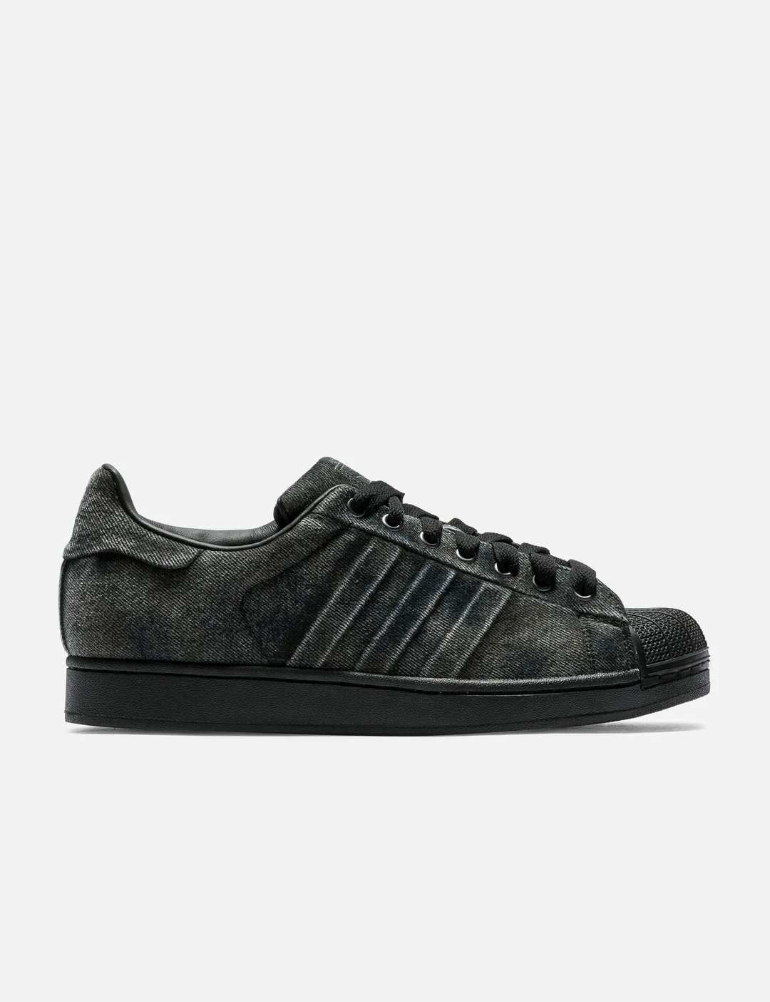 - adidas Originals - Superstar II Prem - Regular fit - Washed black denim upper - Light grey fading - Lace-up closure - 3-stripe embossed on side - Synthetic lining - Rubber outsole - Color: Core Black - Material: Textile, Synthic, Rubber - See more Sneakers and Shoes - Vendor Code: JQ3240