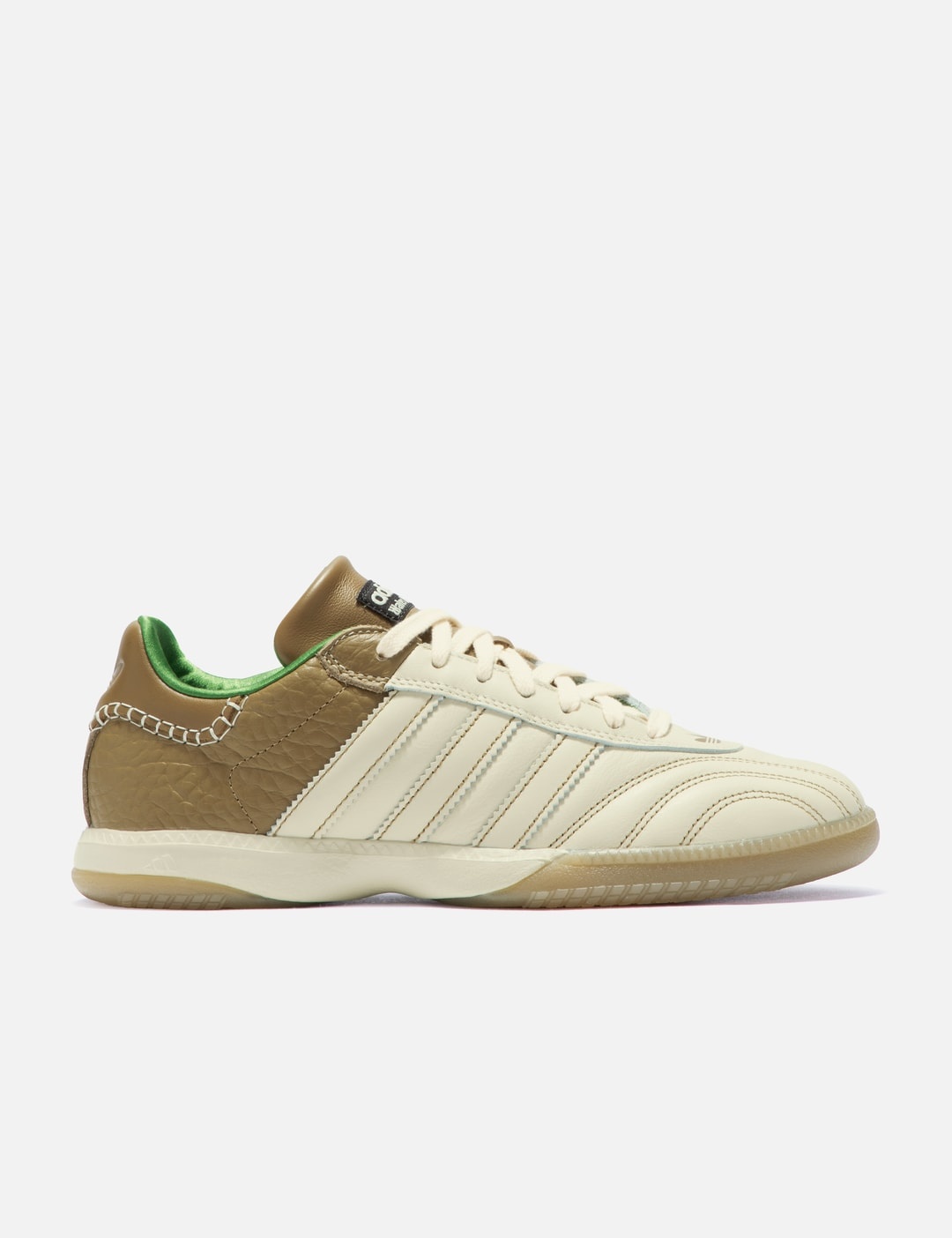 - Adidas Originals - Wales Bonner Samba Shoes - Adidas Originals x Wales Bonner collaborative collection - Leather upper -Woven-like pattern created by the stitching on top - Adidas logo detailing on top - Lace-up closure - Padded tongue with both band names on it - Signature 3-stripe appliqué to the sidewalls - Textile insole in green color - Rubber outsole - Color: Wonder White - Style Code: IF6703 - Material: Leather, Synthetic, Rubber - See more Sneakers and Shoes
