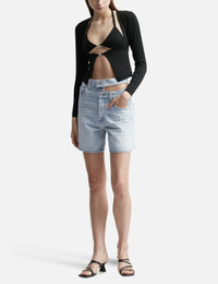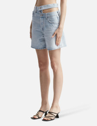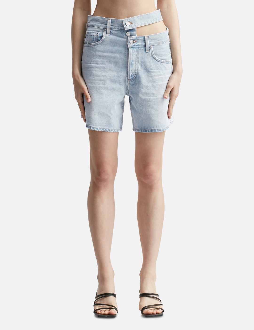 - AGOLDE - Broken Waistband Short - Light cotton denim fabric - Slim fit - 5-pocket style - Thigh length - High waist with cut-out design - Button fly - Straight hem - Color: Attempt - Material: 100% Organic Cotton - See more Shorts and Clothing SIZING - Model wears size 25 - Model measures: Height 176cm, Chest 32”/81cm, Waist 23”/59cm,Hip 35”/90cm