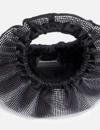 - Alexander Wang - Crescent Mini Top Handle Bag - Distressed crystal hotfix outer - Magnetic closure - Top handle - Color: Black/White - Material: 100% Glass, 100% Polyester - See more Mini Bags, Bags and Accessories SIZING Approximate dimensions: - Height: 10cm - Width: 23cm - Depth: 10cm - Handle Length: 8cm