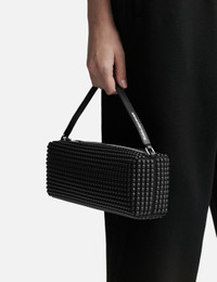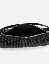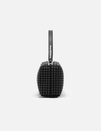 - Alexander Wang - Heiress Flex Bag - Rectangular bag - Tonal 3D rubberized spikes - Leather strap handle with printed logo - Metal top zipper closure - Single main compartment - Two card slot patch pockets - Jacquard logo lining - Color: Black - Material: 80% Polyurethane, 20% Cowhide; Lining: 100% Polyester - See more Bags and Accessories SIZING Approximate dimensions: - Height: 10cm - Width: 30cm - Depth: 6cm - Handle Length: 12cm