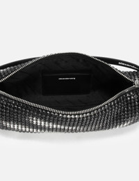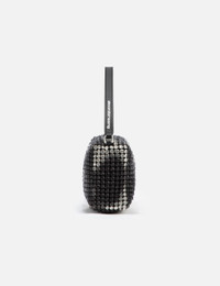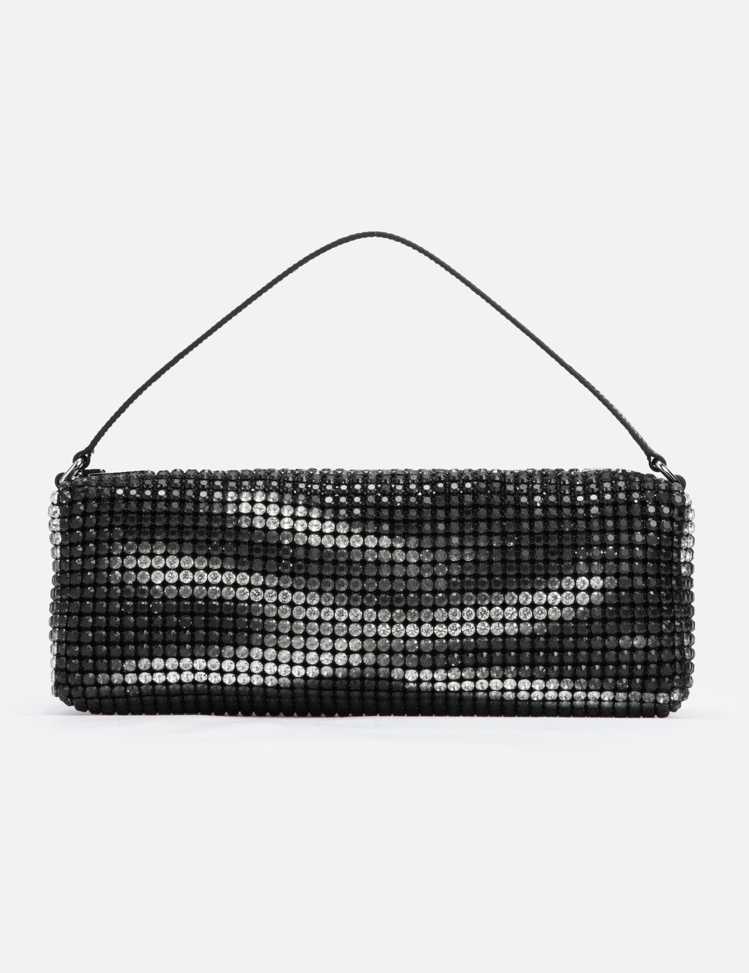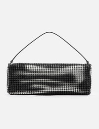 - Alexander Wang - Heiress Flex Bag - Rectangular bag - Tonal crystal mesh - Burnished technique for a worn effect on the crystal mesh - Leather strap handle with printed logo - Metal top zipper closure - Single main compartment - Two card slot patch pockets - Jacquard logo lining - Color: Black Aged - Material: 80% Crystal Glass, 20% Cowhide; Lining: 100% Polyester - See more Bags and Accessories SIZING Approximate dimensions: - Height: 10cm - Width: 30cm - Depth: 6cm - Handle Length: 12cm