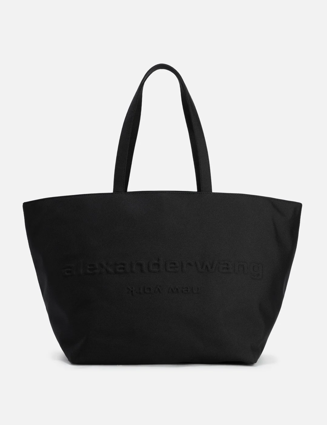 - Alexander Wang - Punch Tote Bag - Raised "Alexanderwang" logo at the center front - Dual handles for shoulder carry - Extra tie closure - Single main compartment - Back wall interior pocket suitable for laptop - Black twill lining - Color: Black - Material: 100% Nylon; Lining: 100% Polyester - See more Tote Bags, Bags and Accessories SIZING Approximate dimensions: - Height: 30cm - Width: 53cm - Depth: 26cm - Strap Length: 24cm