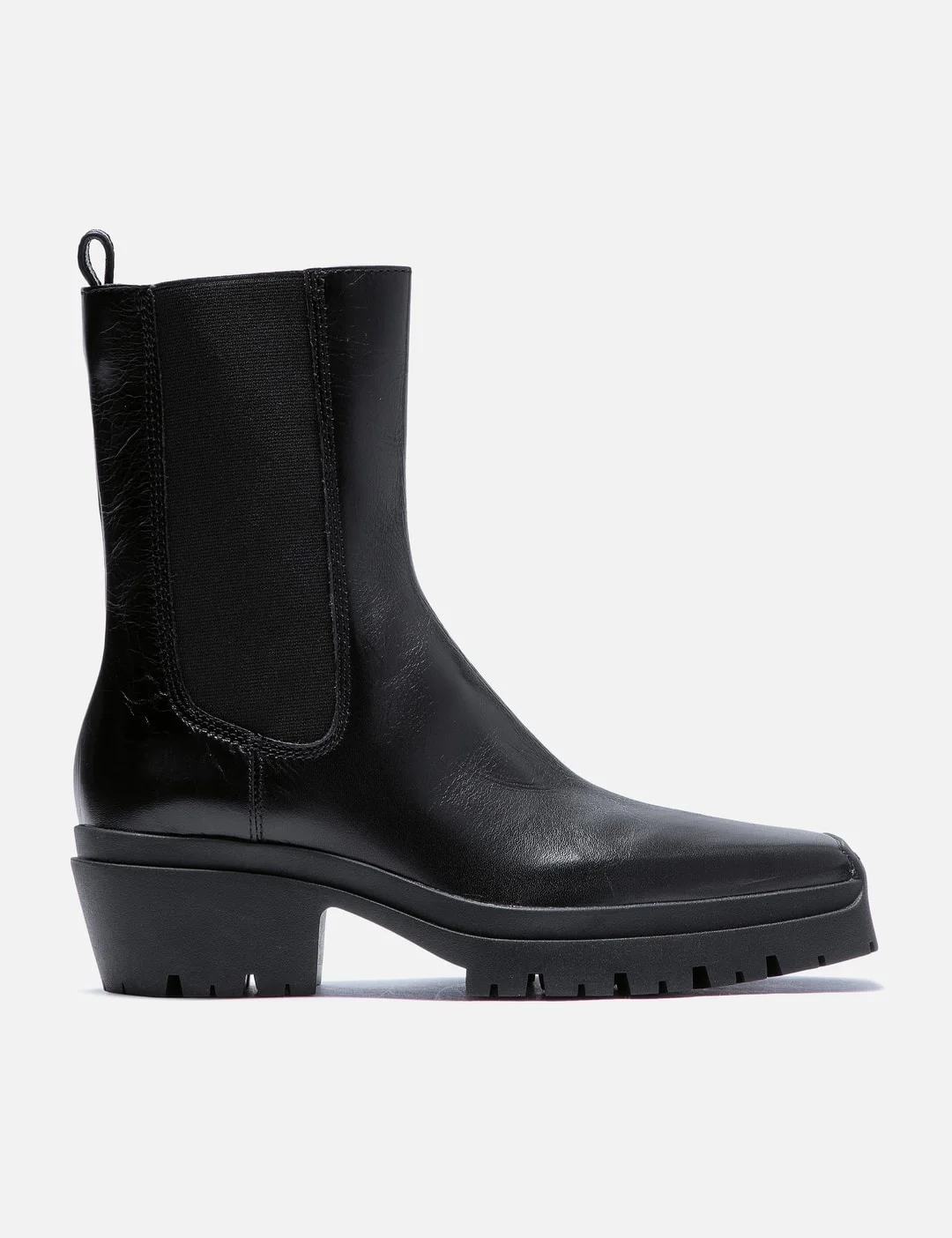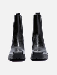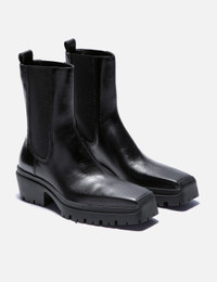 - Alexander Wang - Terrain Crackle Patent Leather Moto Boots - Square toe - Crackle patent leather upper - Leather pull tab - Rubber outsole - Heel height: Approx 45mm - Color: Black - Material: Leather, Rubber - See more Boots and Shoes