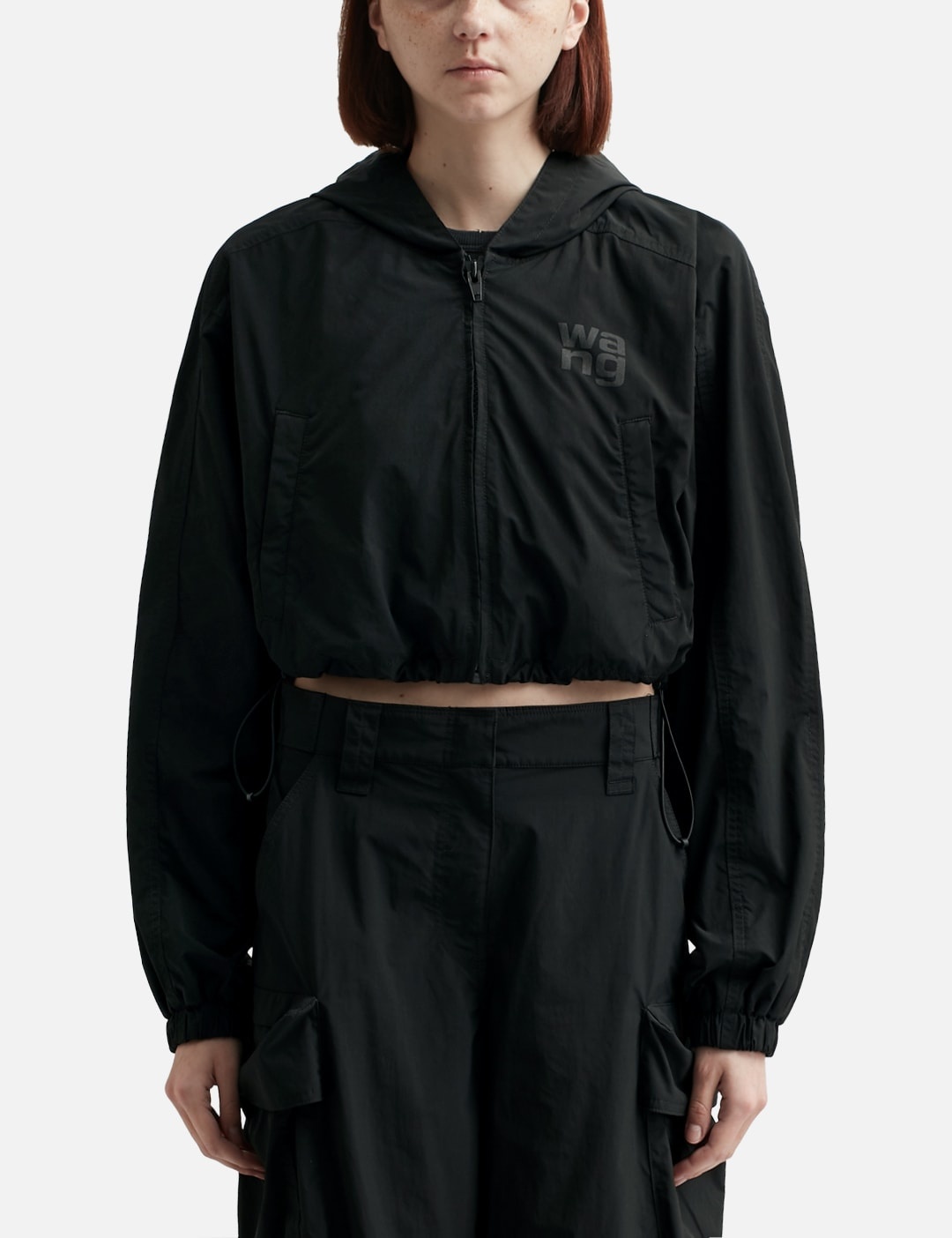 - T By Alexander Wang - Hooded Cropped Zip Jacket - Classic hood - Drop shoulder - Long sleeves - Logo print at the chest - Front zip fastening - Two side welt pockets - Elasticated cuffs and hem - Color: Black - Material: 100% Cotton - See more Jackets and Clothing SIZING - Model wears size S - Model measures: Height 177cm, Chest 32”/81cm, Waist 23.5”/59.7cm, Hip 33’’/83.8cm