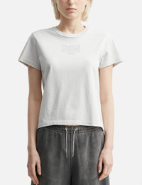 - T By Alexander Wang - Logo Cropped T-shirt - Cropped length fit - Crewneck - Short sleeves - Logo graphic at front chest - Straight hem - Color: Dirty White - Material: 100% Cotton - See more SS T-Shirts, T-Shirts and Clothing SIZING - Model wears size 132 - Model measures: Height 177cm, Chest 31.9’’/81cm, Waist 23.6’’/60cm, Hip 35.8’’/91cm