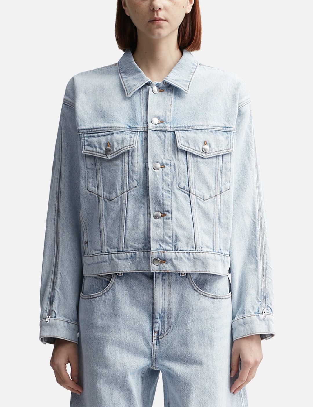ZIPPED SLEEVE TRUCKER JACKET IN DENIM