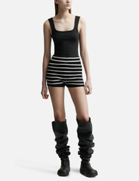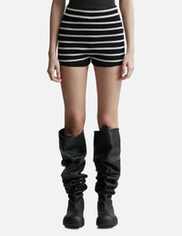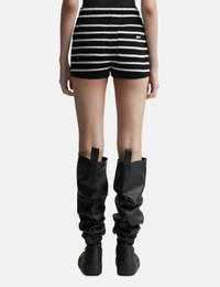 - Ami - Ami Embroidery Sailor Mini Short - Sailor cotton wool - Full needle stitch - Two back pockets - Off white ami embroidery on back right pocket - Made in Italy - Color: Black/ Chalk - Material: 85% Organic Cotton, 15% Wool - See more Shorts and Clothing SIZING - Model wears size S - Model measures: Height 178cm, Chest 33”/84cm, Waist 24’’/61cm, Hip 36’’/91cm