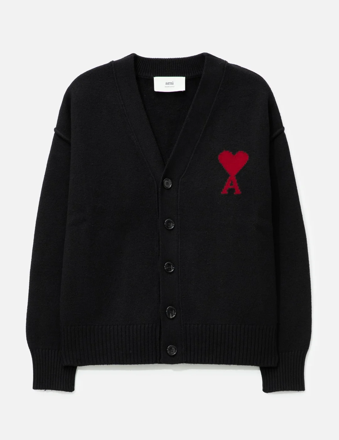 - Ami - Cardigan With Contrasted Ami De Coeur - Made of wool - Ami horn black buttons - Intarsia knitted Ami de Coeur logo on the chest - Jersey stitch - Inside out seams - Responsible wool product - Made in Portugal - Color: Black/Red - Material: 100% Wool - See more Knitwear and Clothing - Model wears size M - Model measures: Height 186cm, Chest 34”/86cm, Waist 28”/71cm, Hip 36”/91cm - Vendor Code: UKC367.018