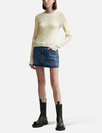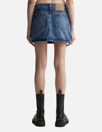 - Ami - Denim Mini Skirt - Washed denim cotton - Zip fly - 5-pocket style - Mini-length - Color: Used Blue - Material: 100% Cotton - See more Skirts and Clothing SIZING - Model wears size 26 - Model measures: Height 177cm, Chest 32"/81cm, Waist 23.5"/59.7cm, Hip 33’’/83.8cm