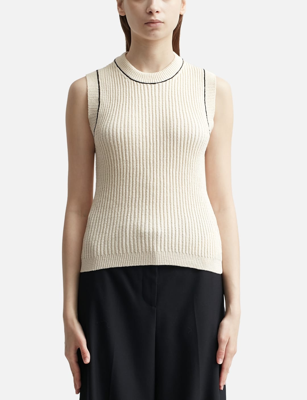 contrast-stitch sleeveless knit top