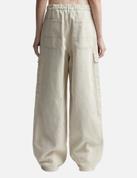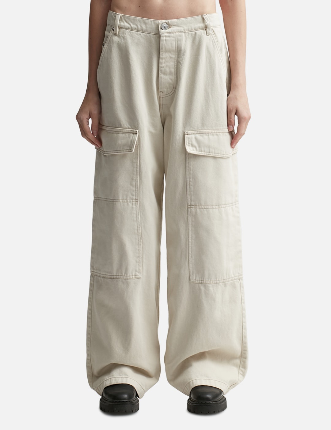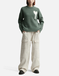 - Ami - Worker Baggy - Made of colored cotton twill - Classic waist - Wide leg - Button fly - Metal studs and buttons in nickel color - Flap pockets with invisible snap buttons - Slightly contrasted topstitches - Made in Portugal - Color: Off White - Material: 100% Cotton - See more Pants and Clothing SIZING - Model wears size 26 - Model measures: Height 177cm, Chest 32”/81cm, Waist 23.5”/59.7cm, Hip 33’’/83.8cm