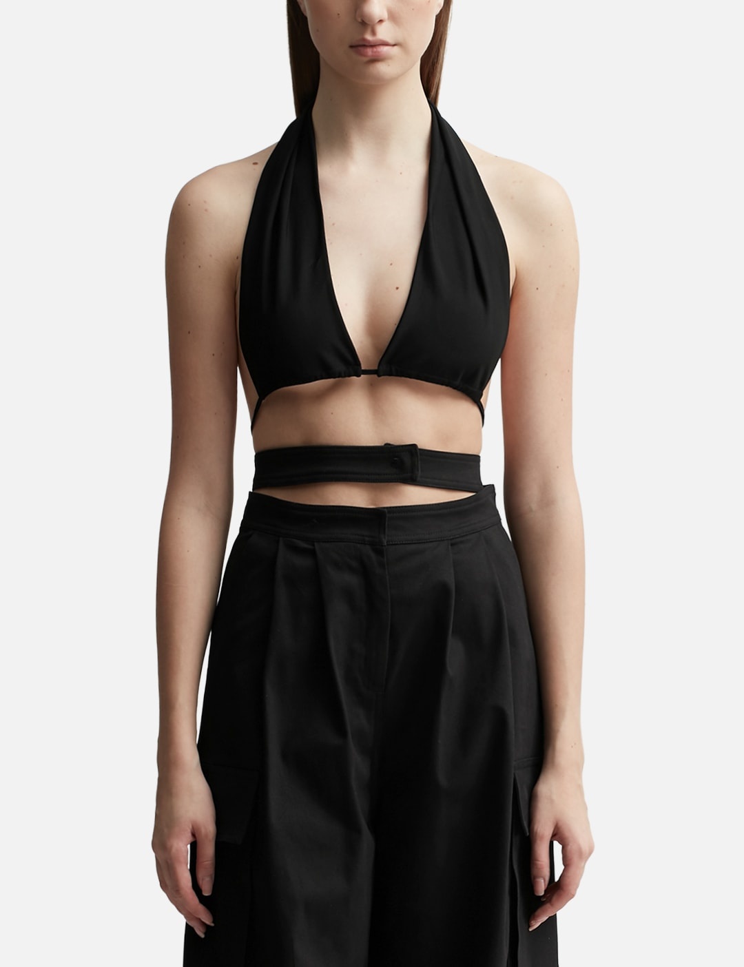 - ANDREĀDAMO - Draped Jersey Bra - Coulisse Detail - Strap on the back - Made In Italy - Color: Black - Material: 100% Viscose - See more Tops and Clothing SIZING - Model wears size S - Model measures: Height 181cm, Chest 33”/84cm, Waist 24”/61cm, Hip 35”/90cm